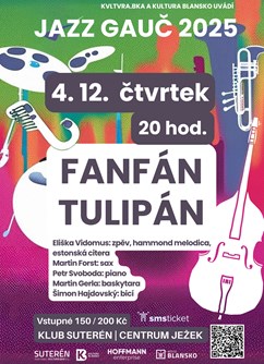Suterén, Blansko Suterén, Blansko, Česká republikaFanfán Tulipán se uskuteční dne 2025-12-04 v 20:00 v Blansko, Suterén.🎟️ Koupit vstupenkuHravost, originalita, groove...